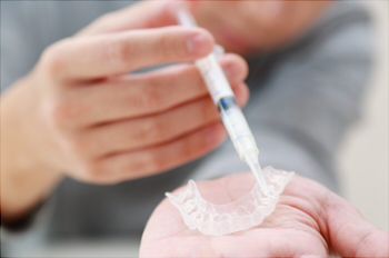 マウスピースは、当院にて作製し、そのマウスピースとホームホワイトニングキットをご自宅へ持ち帰っていただき、ご自分でマウスピースの中にホワイトニングジェルを入れてホワイトニングを開始します。
